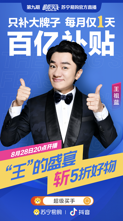 明日,王祖藍(lán)將做客蘇寧抖音“超級(jí)買手直播間”,所有帶貨商品均來自蘇寧易購(gòu)。