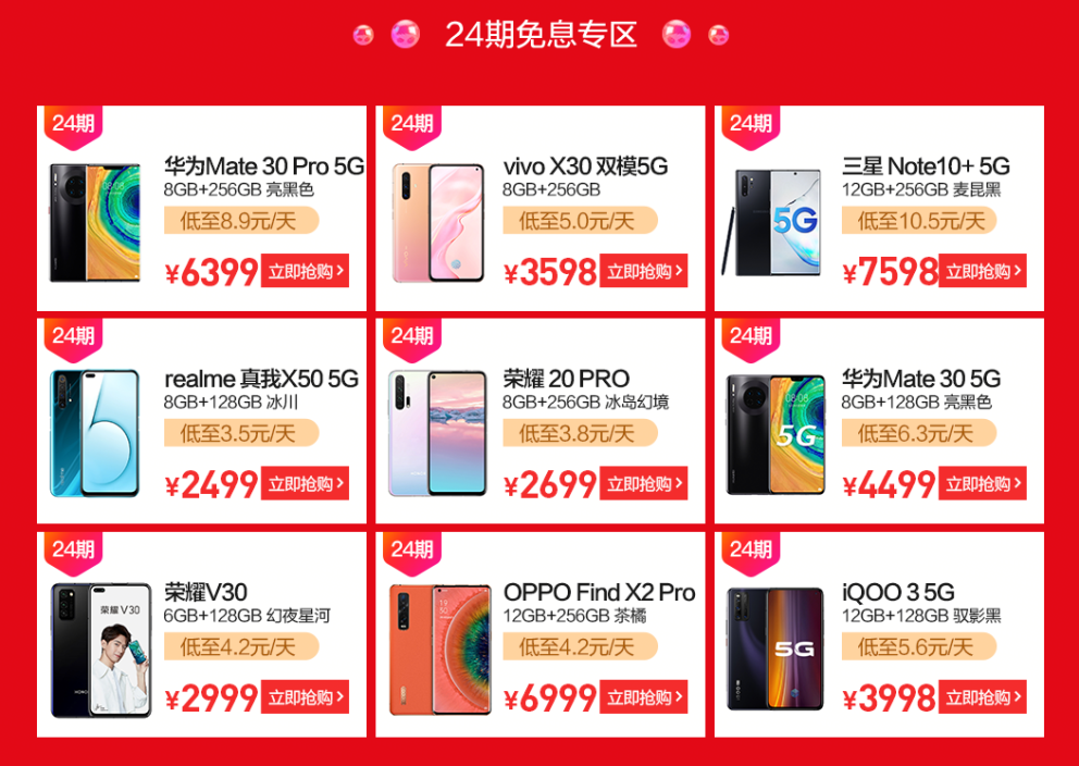 今日,蘇寧5G手機節(jié)正式迎來開門紅,開啟5G手機迄今為止最大力度的免息專場,5G手機最低每天只需3.5元即可入手。