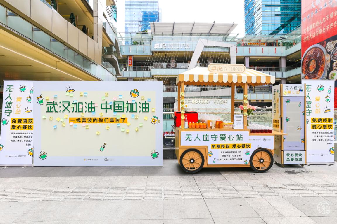 3月3日至3月8日卓悅INTOWN在街頭專(zhuān)設(shè)了一個(gè)”無(wú)人值守愛(ài)心站”,用愛(ài)心餐車(chē)上放滿(mǎn)了食物冷/熱飲,專(zhuān)門(mén)免費(fèi)贈(zèng)送給快遞、外賣(mài)小哥、環(huán)衛(wèi)工人、警察、城管等一線(xiàn)奔波的人員。