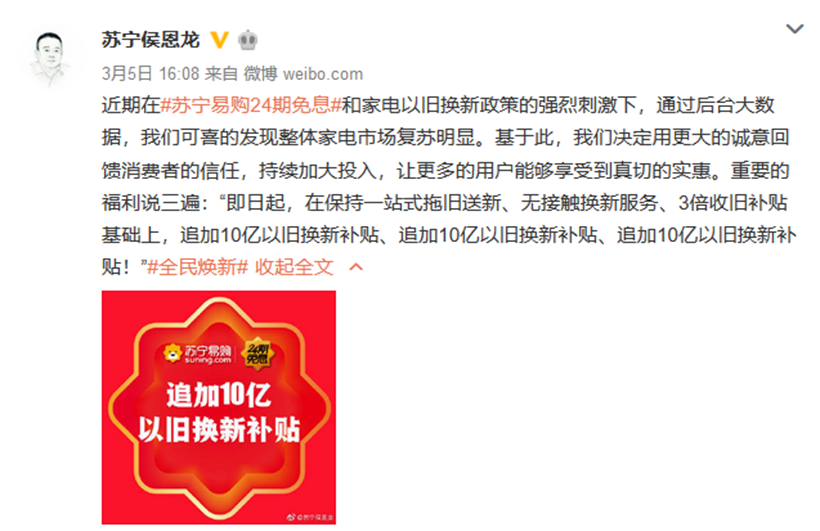 3月10日,蘇寧發(fā)布消息稱(chēng),315全民煥新節(jié)期間,家電3C新品全線(xiàn)參與分期免息,消費(fèi)者使用蘇寧任性付或銀行信用卡支付,最高享24期免息。