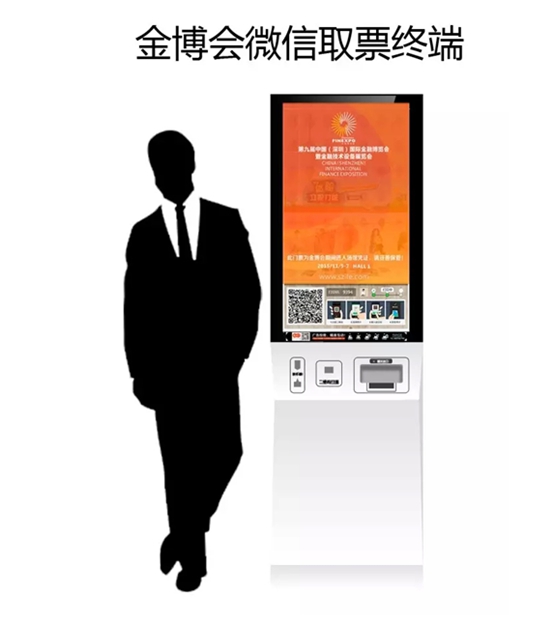 本次金博會將采用自助微信取票終端方式獲取門票入場,展會現(xiàn)場【微信取票終端】免費自助打印個性化門票,請關(guān)注下圖中取票終端設(shè)備: