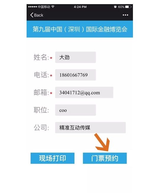 2、如實填寫相關(guān)參展信息,點擊【門票預(yù)約】提交。