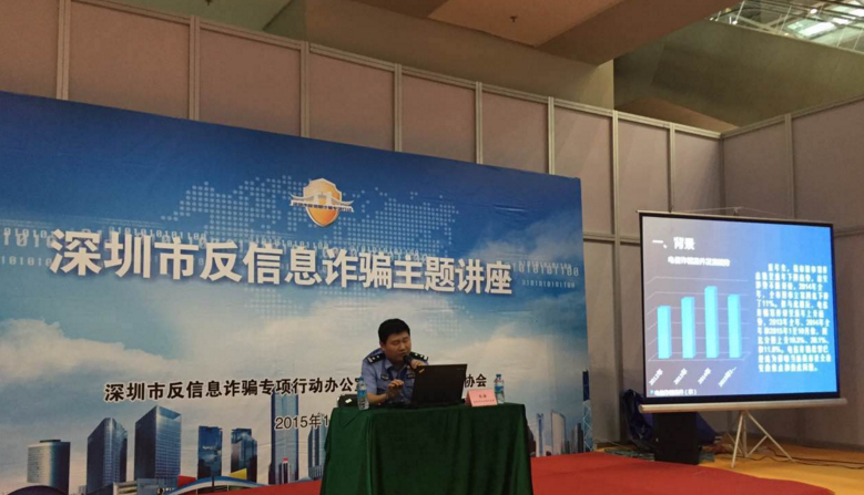 “針對(duì)信息詐騙犯罪高發(fā)的態(tài)勢(shì),今年8月1日,我市開展以深圳市政法委書記李華楠同志為領(lǐng)導(dǎo)小組組長(zhǎng)的反信息詐騙犯罪專項(xiàng)行動(dòng),為期半年。此次專項(xiàng)行動(dòng)主要集中公安、銀行、通信、工商、網(wǎng)絡(luò)企業(yè)等專業(yè)力量共同打擊信息詐騙犯罪。經(jīng)過合成打擊、宣傳防范、警信警銀合作、對(duì)策研究等多個(gè)方面的工作,8月1日至10月25日,全市共立信息詐騙案件環(huán)比下降了13.9%;破信息詐騙案件280宗,環(huán)比260宗上升了7.7%;逮捕涉信息詐騙犯罪嫌疑人190人,環(huán)比149人上升了27.5%;打掉涉信息詐騙犯罪團(tuán)伙19個(gè),環(huán)比19個(gè)持平;凍結(jié)涉案賬戶203個(gè),資金3089.9萬元?!鄙钲谑泄簿中虃删执箨?duì)長(zhǎng)朱海在講座上分享道。