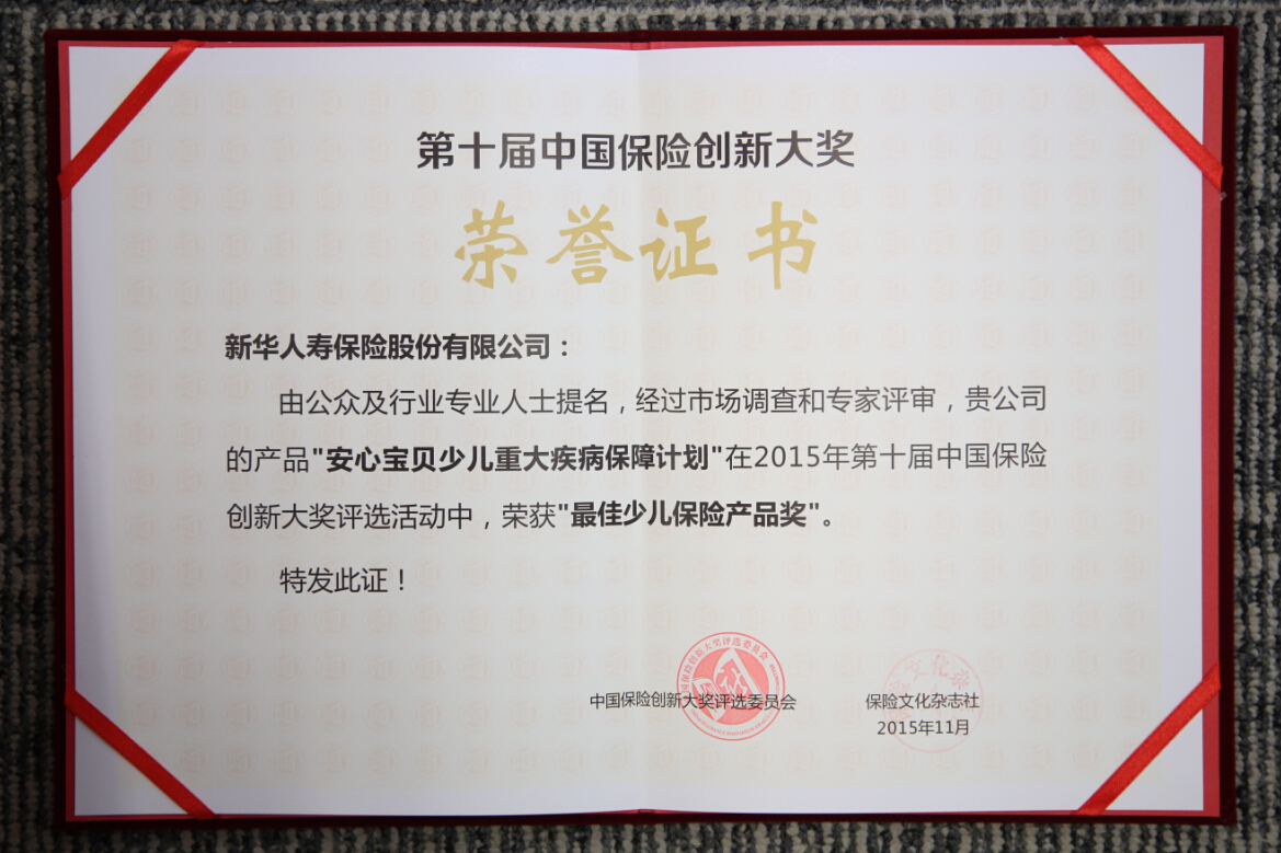 2015年最佳少兒保險產品獎