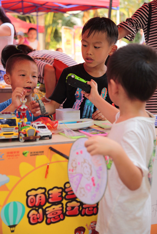 7月9日下午,一場(chǎng)有趣的“萌主”兒童創(chuàng)意市集在彩田村中心廣場(chǎng)舉行,40多名小朋友在家人的陪同下在這里鼓起勇氣挑戰(zhàn)自己。