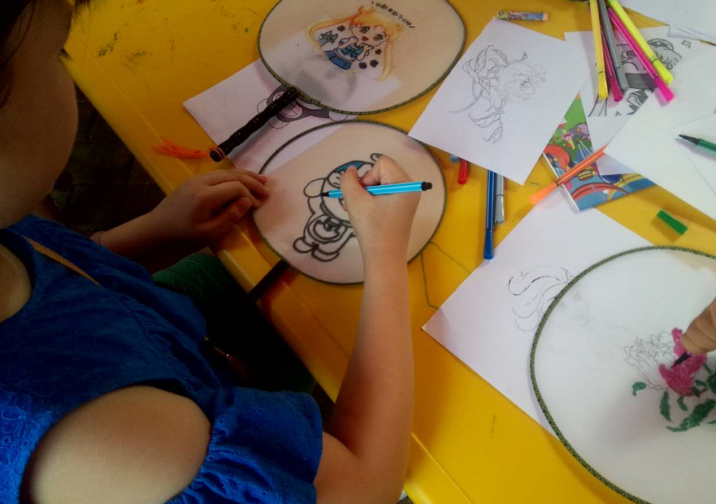 而在所有體驗(yàn)項(xiàng)目中,扇子彩繪成為人氣最旺的一個體驗(yàn)項(xiàng)目。從活動開始,一波又一波的小朋友涌進(jìn)扇子彩繪體驗(yàn)區(qū)。有的家長和孩子齊上陣,挑選好自己喜歡的扇面后,就在深圳國子監(jiān)文化傳播有限公司的專業(yè)老師指導(dǎo)下開始精心創(chuàng)作,充滿童趣的卡通畫、意境悠遠(yuǎn)的山水畫、栩栩如生的工筆畫,每一幅作品都引來眾多的圍觀贊嘆。