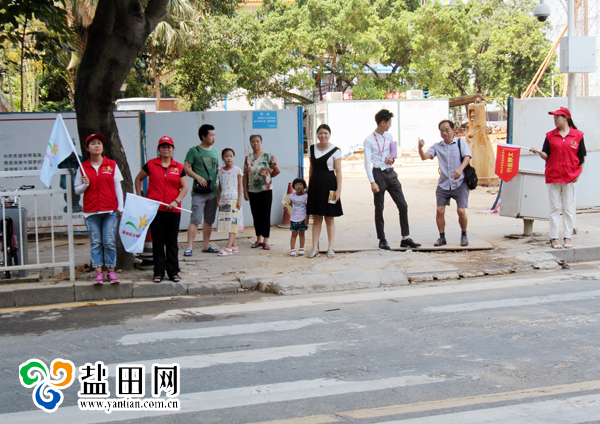 周末的深圳,一大早就艷陽高照,氣象部門早早就發(fā)出了高溫橙色預(yù)警,但高溫天氣絲毫也沒有阻擋“微友”開展“文明微行動”活動的決心。上午十時,記者在現(xiàn)場看到,近百名身著紅馬甲的“微友”已經(jīng)在區(qū)政府,新一佳,郵局等人流量集中的十字路口開展交通文明勸導(dǎo)活動。盡管酷暑難耐,來往路人顯得行色匆匆,但在“微友”們的交通指揮和勸導(dǎo)下,車輛主動禮讓行人,行人自覺地遵守秩序,各個十字路口一片秩序井然。
