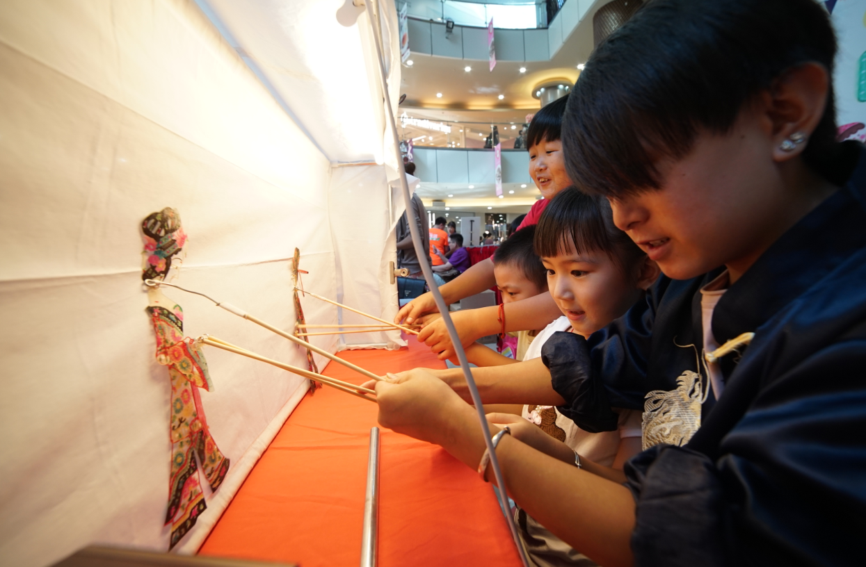皮影戲距今已經有2000多年的歷史了,是國家級非物質文化遺產。當音樂響起,皮影師傅們在幕布后面手持將軍皮影上下翻滾,而在幕布前,那皮影仿佛有了生命一般,時而勇猛,時而溫情,臺下的觀眾也被精彩的劇情吸引住了。表演結束后,在皮影師傅的指導下,小朋友們還親自動手操作了一次皮影。家長王媽媽一邊用手機全程錄制,一邊感嘆:這些東西孩子都是第一次體驗,以前都只是在電視上看到。帶孩子來體驗一下,既能讓他感受到中華文化的博大精深,也能感受到這些老師們對傳統(tǒng)手工技藝的堅持與傳承。