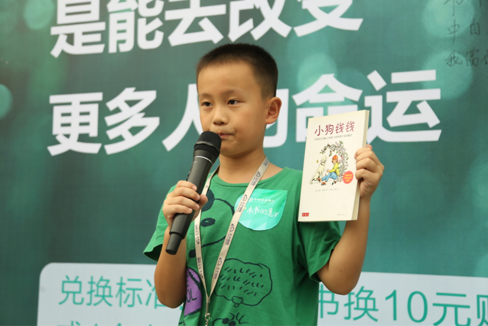本次活動受到了社會各界的熱烈響應(yīng),錦田小學(xué)的30余位家長和學(xué)生更是組團來到現(xiàn)場,他們不僅帶來了近400本優(yōu)質(zhì)少兒讀物并全部捐獻出來,而且還帶來了精彩的圖書分享會。記者在現(xiàn)場看到,錦田小學(xué)的小朋友們在換書間隙,紛紛登上舞臺與大家分享自己喜愛的書籍和感悟,并繪聲繪色地講述書籍中精彩的部分。李博恒小朋友更是給大家分享了一本叫做《小狗錢錢》的書,書中指出了一些孩子理財?shù)男》椒ǎ⌒∧昙o(jì)閱讀涉獵范圍就很廣,令家長們贊嘆不已。