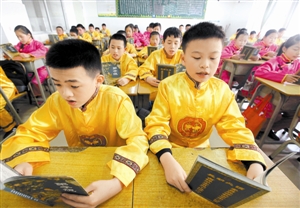 “父母呼,應(yīng)勿緩,父母命,行勿懶……”新學(xué)期開學(xué)后,每天上午上課前十分鐘,寶龍學(xué)校2000多名學(xué)生,都會拿出學(xué)校特制的講義,齊聲誦讀《弟子規(guī)》。這是該校為培養(yǎng)學(xué)生養(yǎng)成良好的行為習(xí)慣、弘揚祖國優(yōu)秀傳統(tǒng)文化而推出的“國學(xué)經(jīng)典進課堂”計劃的一部分。