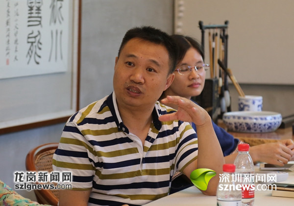 當天的講堂中,結(jié)合書法主題,李靜與聽課者圍坐一桌,以十分親切自然的方式與龍崗書法愛好者進行了交流。從書法的概念內(nèi)涵,到書法由古至今的發(fā)展歷程,再到書法創(chuàng)作的理念精髓,李靜深刻剖析了書法的基本含義,深入淺出講解了書法中的歷史因子。在現(xiàn)場聽課的書法愛好者們聽得認真,課后還與李靜進行了深入的交流。