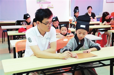圖為活動現(xiàn)場家長和小孩一起學習。