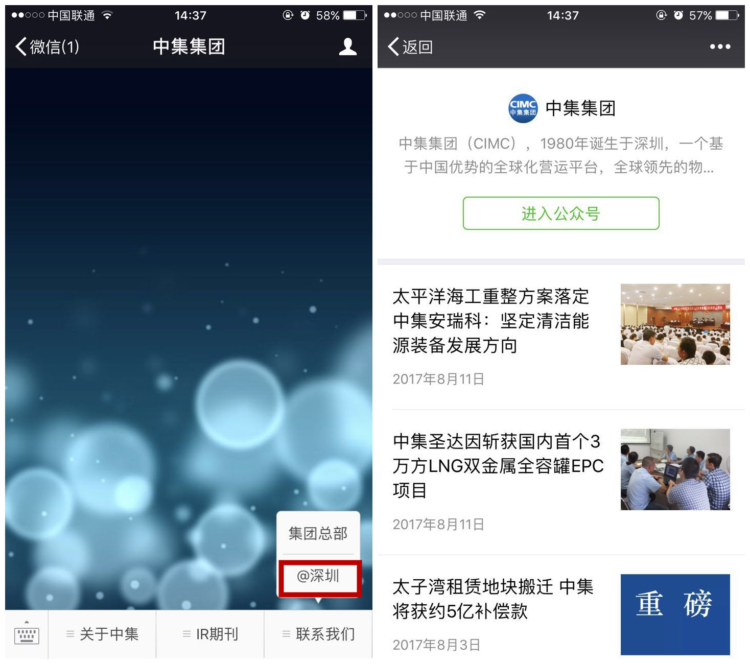 深圳新聞網(wǎng)訊(記者 陳飛)近日,中國國際海運(yùn)集裝箱(集團(tuán))股份有限公司(簡稱:中集集團(tuán))官方微信公眾號“中集集團(tuán)”正式入駐@深圳平臺。