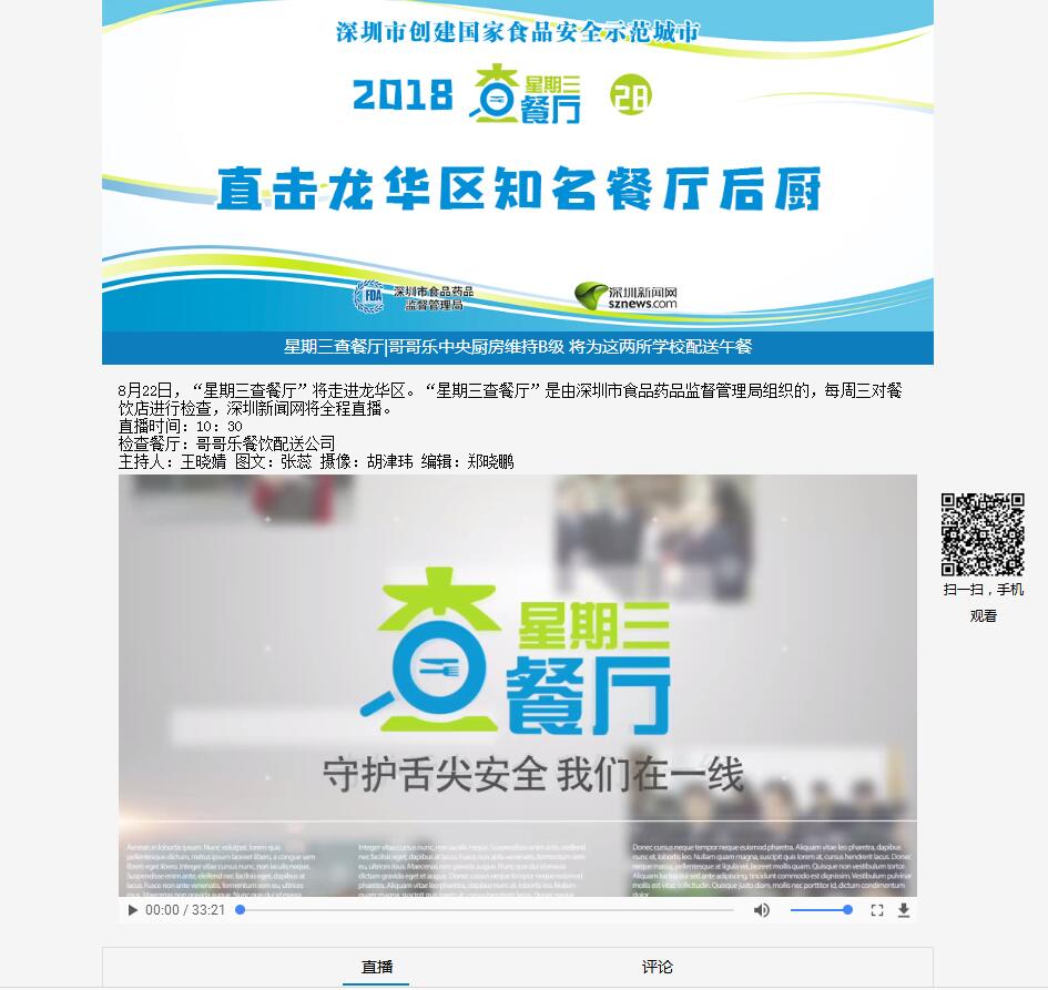 “星期三查餐廳”節(jié)目組采用深圳新聞網(wǎng)直播平臺(tái),記者使用手機(jī)或攝像機(jī)進(jìn)行拍攝,照片、直播視頻、文本內(nèi)容等回傳后方編輯,編輯在直播平臺(tái)上進(jìn)行內(nèi)容整理,將執(zhí)法行動(dòng)全程進(jìn)行視頻+圖文全程直播。網(wǎng)友無需下載任何客戶端,可通過Internet直接在PC、移動(dòng)客戶端等設(shè)備上實(shí)時(shí)觀看執(zhí)法過程,并能在線對(duì)直播內(nèi)容進(jìn)行評(píng)論。