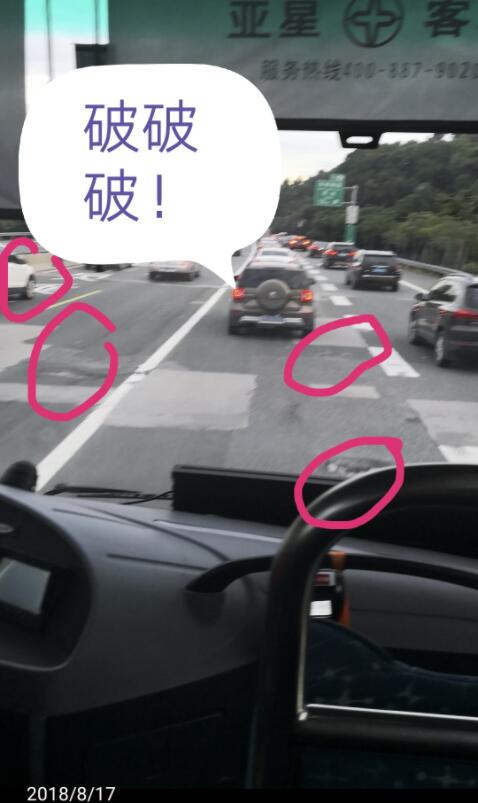 市民syh19667288于6月17日在深圳論壇發(fā)帖《梅觀高速,你的路面質(zhì)量不如我家小縣城啊》,用一組經(jīng)過標注的照片展示了梅觀高速路多處路面破損的情況。