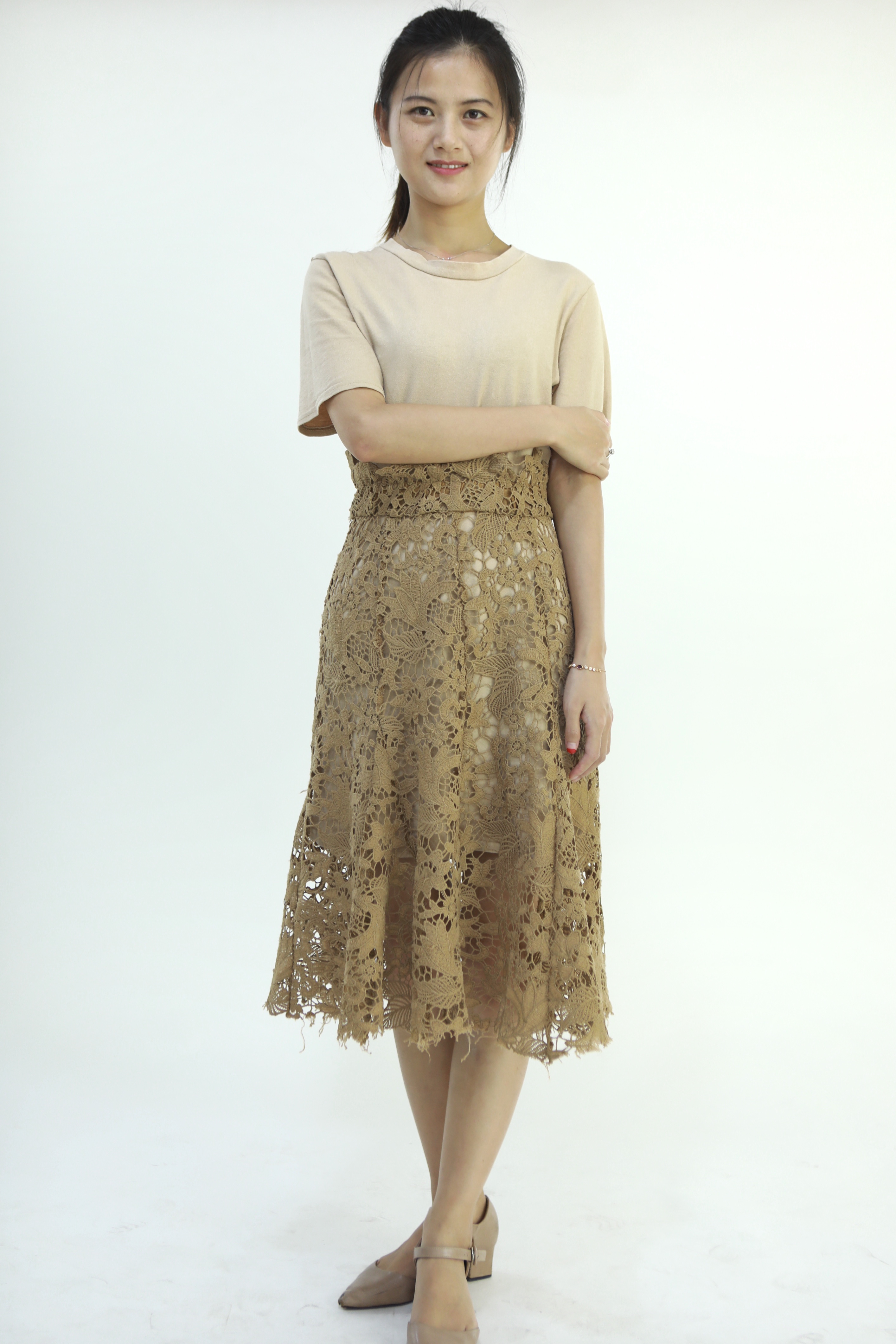 改造前:辦事利落馬尾+一身神秘顏色的裙子