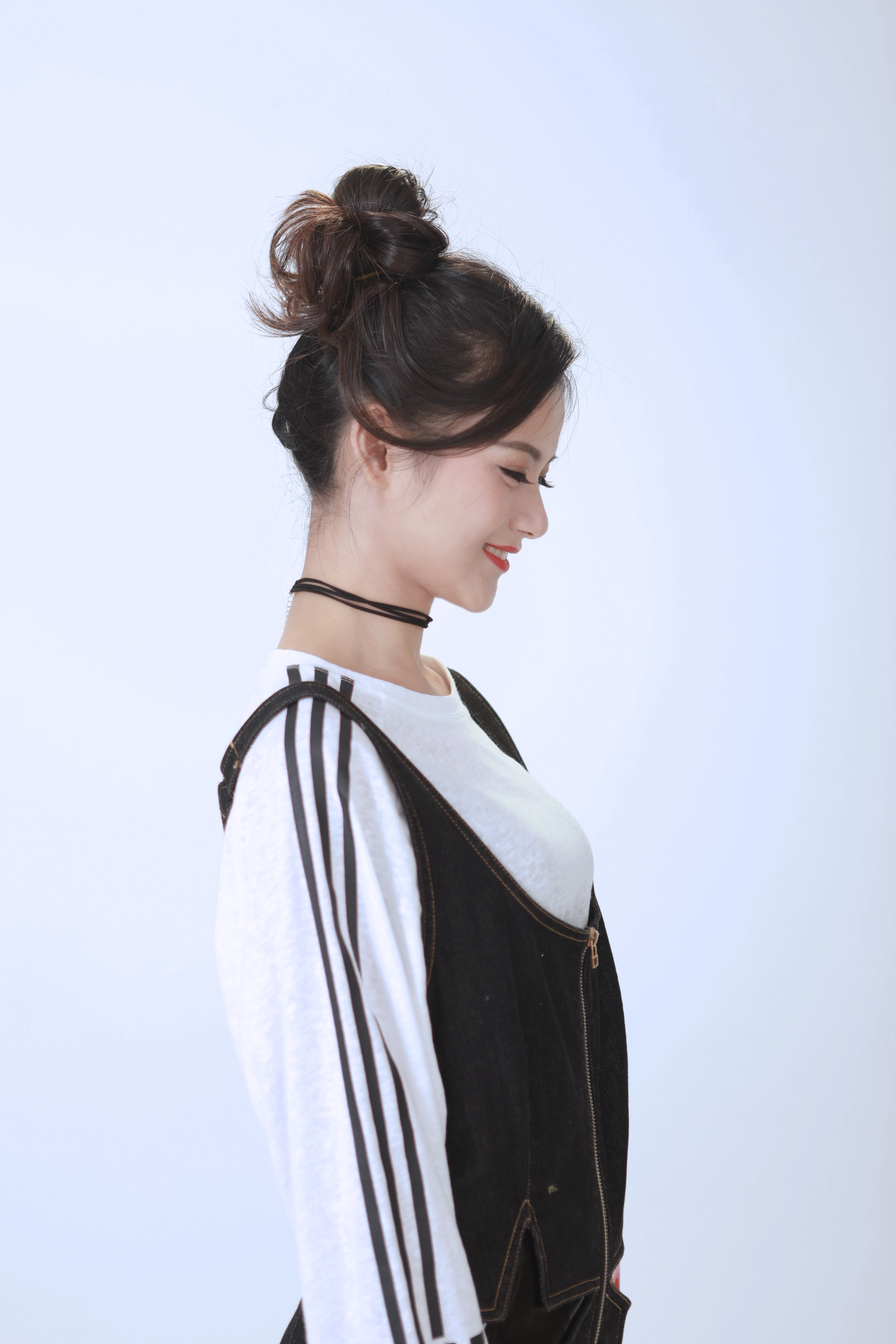 改造后的曉敏小仙女,高高的丸子頭顯得元氣滿滿,西瓜紅色系腮紅和唇色少女感滿分,搭配俏皮的背帶褲,我也好想和曉敏一起玩耍喲。