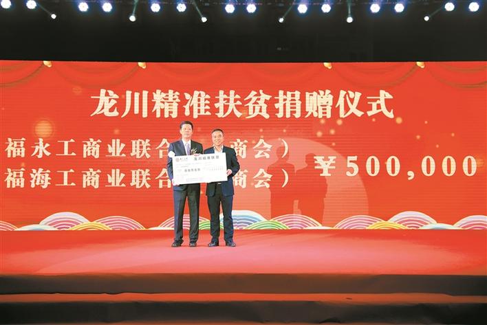黃爾春(左一)代表福商基金會向福海街道捐贈扶貧基金。