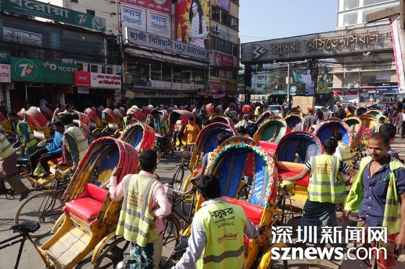 實(shí)拍世界三輪車(chē)之都達(dá)卡 浩浩蕩蕩車(chē)流構(gòu)成奇特街景