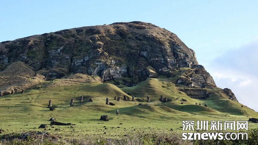 復(fù)活節(jié)島上最著名、最神秘的歷史文明遺跡是巨大的摩艾石像。李仁奇 攝