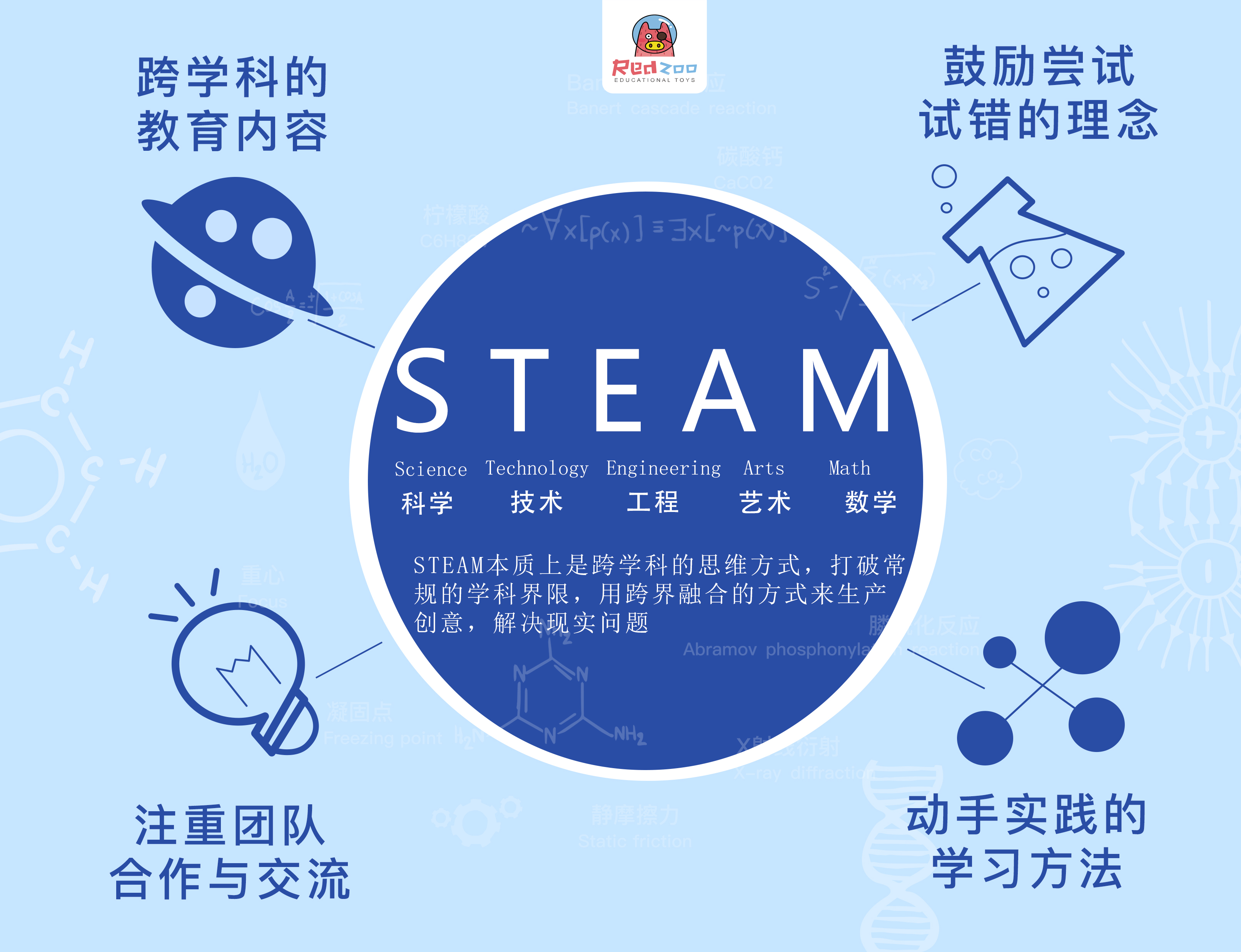 STEAM是起源于美國的教育理念,是融合了科學(xué)(Science)、技術(shù)(Technology)、工程(Engineering)、藝術(shù)(Arts)、數(shù)學(xué)(Mathematics)的綜合式教育,強(qiáng)調(diào)的是多學(xué)科,跨領(lǐng)域知識的學(xué)習(xí)和應(yīng)用,較比傳統(tǒng)教育理念來說,STEAM教育對于實踐能力要求更高。