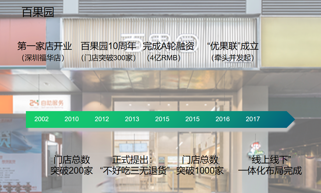 百果園公司是目前中國(guó)乃至全球“水果專(zhuān)營(yíng)連鎖業(yè)態(tài)”的開(kāi)創(chuàng)者,2001年成立至今,已在全國(guó)70多個(gè)城市形成了超3700家門(mén)店(每月以近百家店以上的速度持續(xù)增加)的經(jīng)營(yíng)規(guī)模,并設(shè)立了20多個(gè)倉(cāng)儲(chǔ)配送中心,與國(guó)內(nèi)外200多個(gè)水果基地建立了密切的合作,為全國(guó)5000多萬(wàn)會(huì)員提供來(lái)自全球的好吃果品,成為消費(fèi)者喜愛(ài)的知名連鎖品牌。