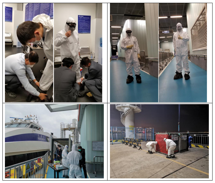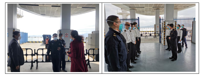 港口各級干部員工勇于擔(dān)當(dāng)、迎難而上,勠力同心、眾志成城,共同筑牢嚴(yán)防疫情輸入的堅強防線,用實際行動詮釋了“牢記使命勇?lián)?dāng)”。蛇口郵輪母港呂如福常務(wù)副總經(jīng)理與港口運營中心林麗華總經(jīng)理連夜開會部署至深夜,第二天仍早早趕到現(xiàn)場與聯(lián)檢單位共同查勘旅客動線;賴乙??偙O(jiān)接到航班通知后,放棄值班休息第一時間趕到現(xiàn)場布置各項保障任務(wù),并親自為一線員工穿戴防護(hù)用品;港口一線員工面對夜間加開航班旅客人數(shù)多且有發(fā)燒旅客的情況,毫不退縮、沖鋒在前,順利完成保障任務(wù),一直到深夜客船和旅客動線消毒清場完畢才下班。