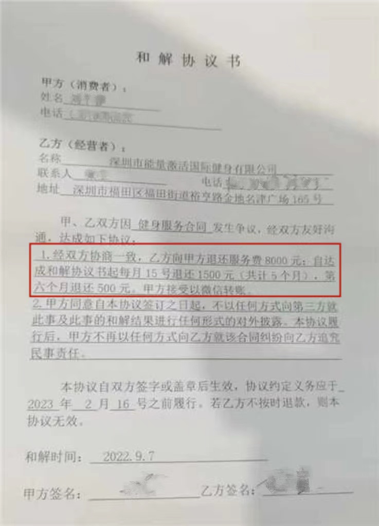 本人在該商家處購買健身會員卡服務(wù),因健身服務(wù)合同內(nèi)容與商家產(chǎn)生爭執(zhí),經(jīng)協(xié)商,商家簽訂了退款協(xié)議,同意退還服務(wù)費8000元,分6期退還。在退還第一期費用1500元后,商家以經(jīng)營困難為由拒不履行退款協(xié)議。