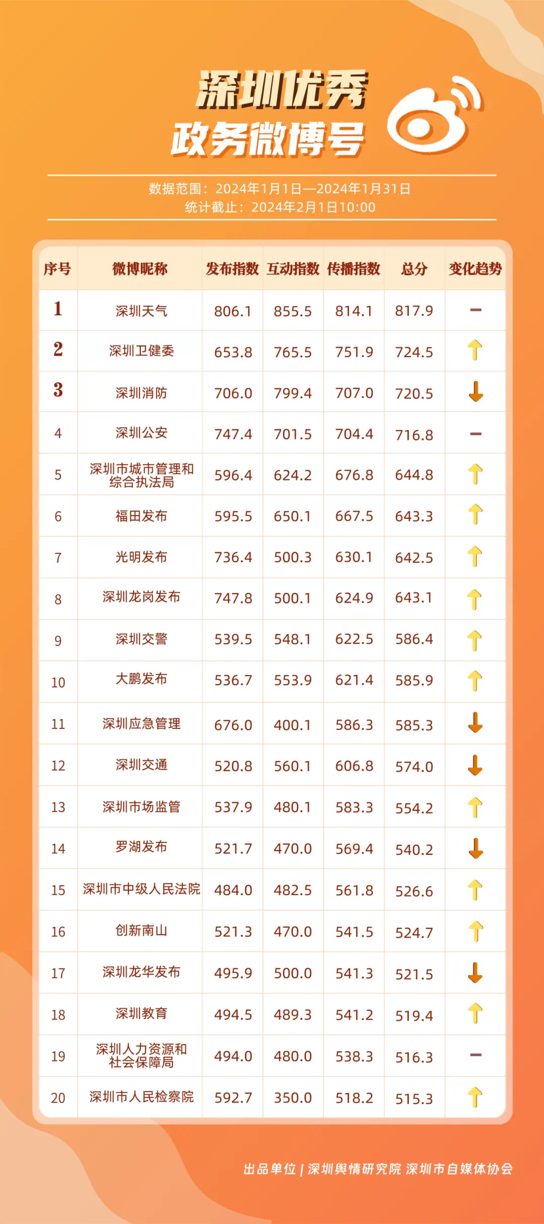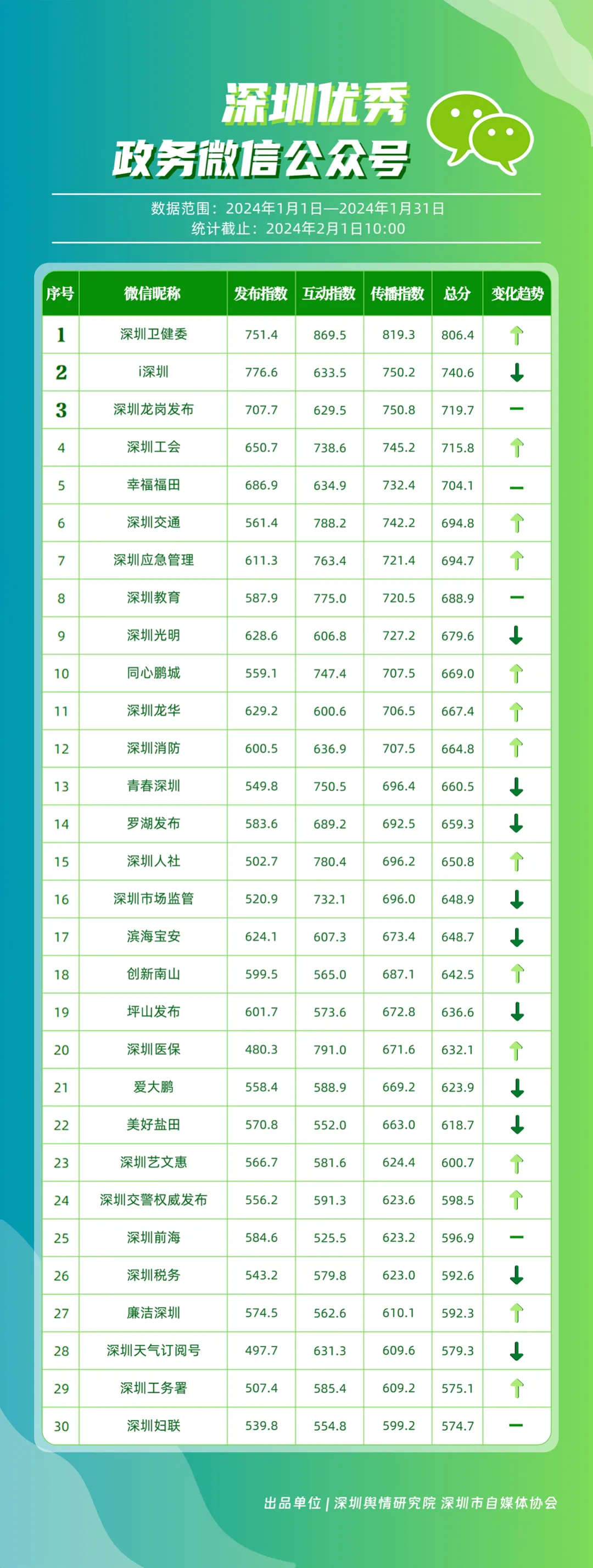 深圳新聞網(wǎng)2月9日訊(記者 陳曉君 實(shí)習(xí)生 張馳)2月8日,深圳輿情研究院、深圳市自媒體協(xié)會(huì)聯(lián)合推出《深圳優(yōu)秀政務(wù)新媒體矩陣》(2024年1月期),市衛(wèi)生健康委、市氣象局、福田區(qū)、光明區(qū)、龍崗區(qū)、龍華區(qū)、市公安局、市應(yīng)急管理局、市交通警察局、羅湖區(qū)的新媒體矩陣獲評(píng)“深圳優(yōu)秀政務(wù)新媒體矩陣”。這些矩陣在內(nèi)容發(fā)布、受眾互動(dòng)和信息傳播方面取得了較好成績,并在深圳政務(wù)新媒體規(guī)范有序發(fā)展進(jìn)程中發(fā)揮著積極作用。