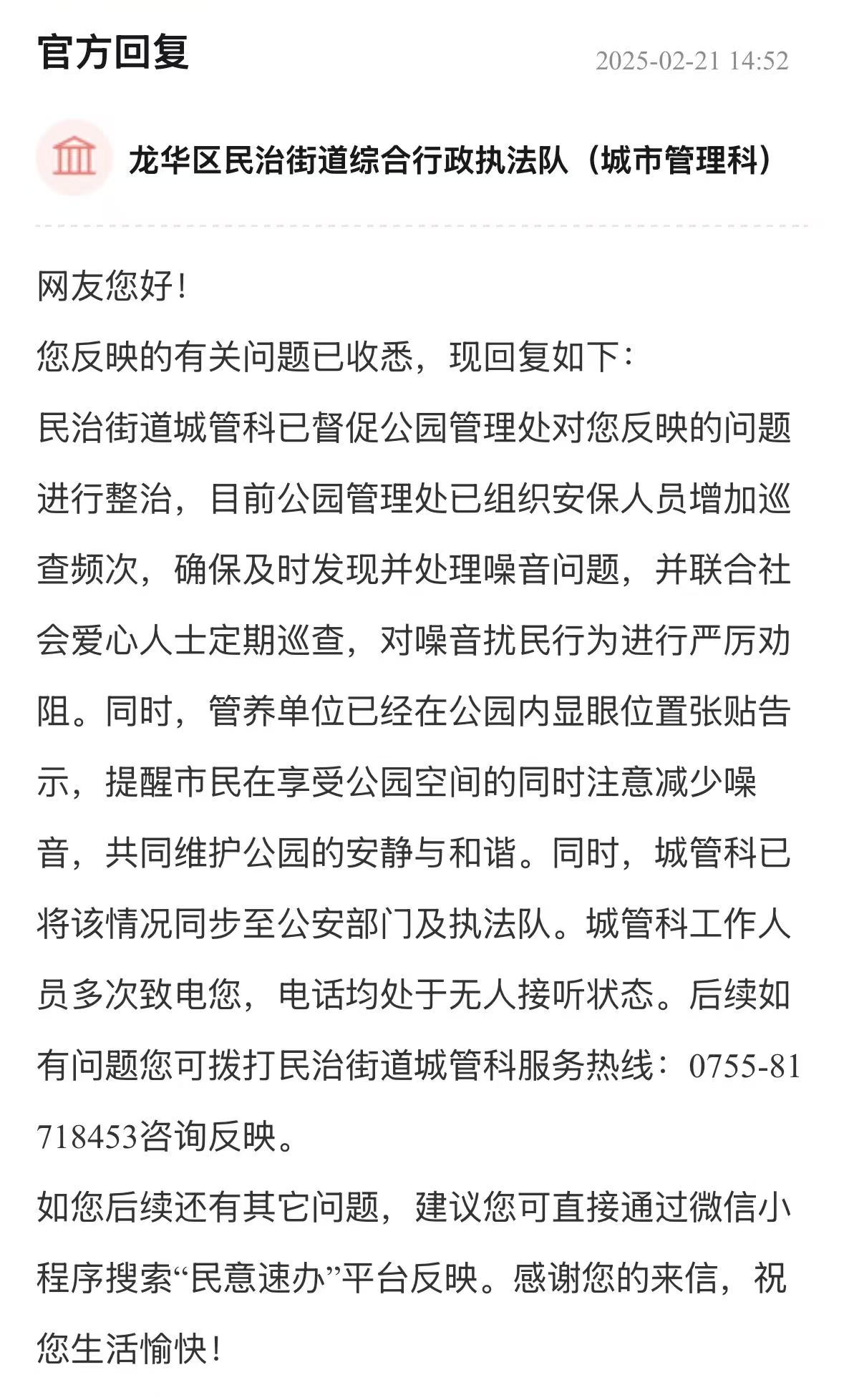 案例點評:街道以“即時處置+源頭預防”雙軌并進:安保巡查形成震懾,警示標識強化行為引導,多部門聯(lián)動執(zhí)法。不過,噪音問題易反彈,也限制了市民業(yè)余活動,建議后續(xù)建立長效管理機制,如分時段音量管控、智能化監(jiān)測設備等,將“柔性引導”與“剛性約束”結(jié)合,切實守護鬧靜皆宜的公共空間秩序。