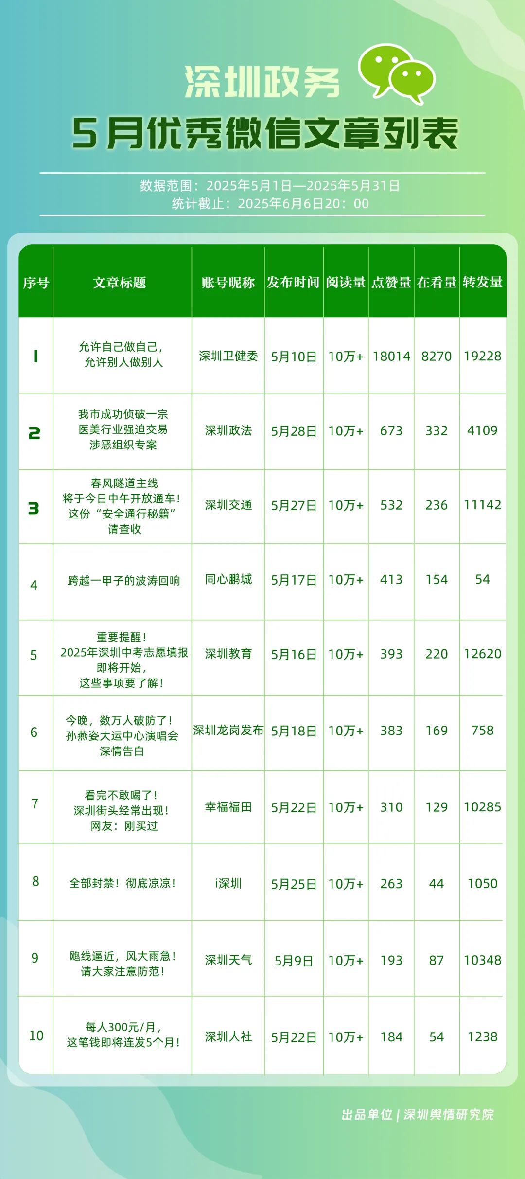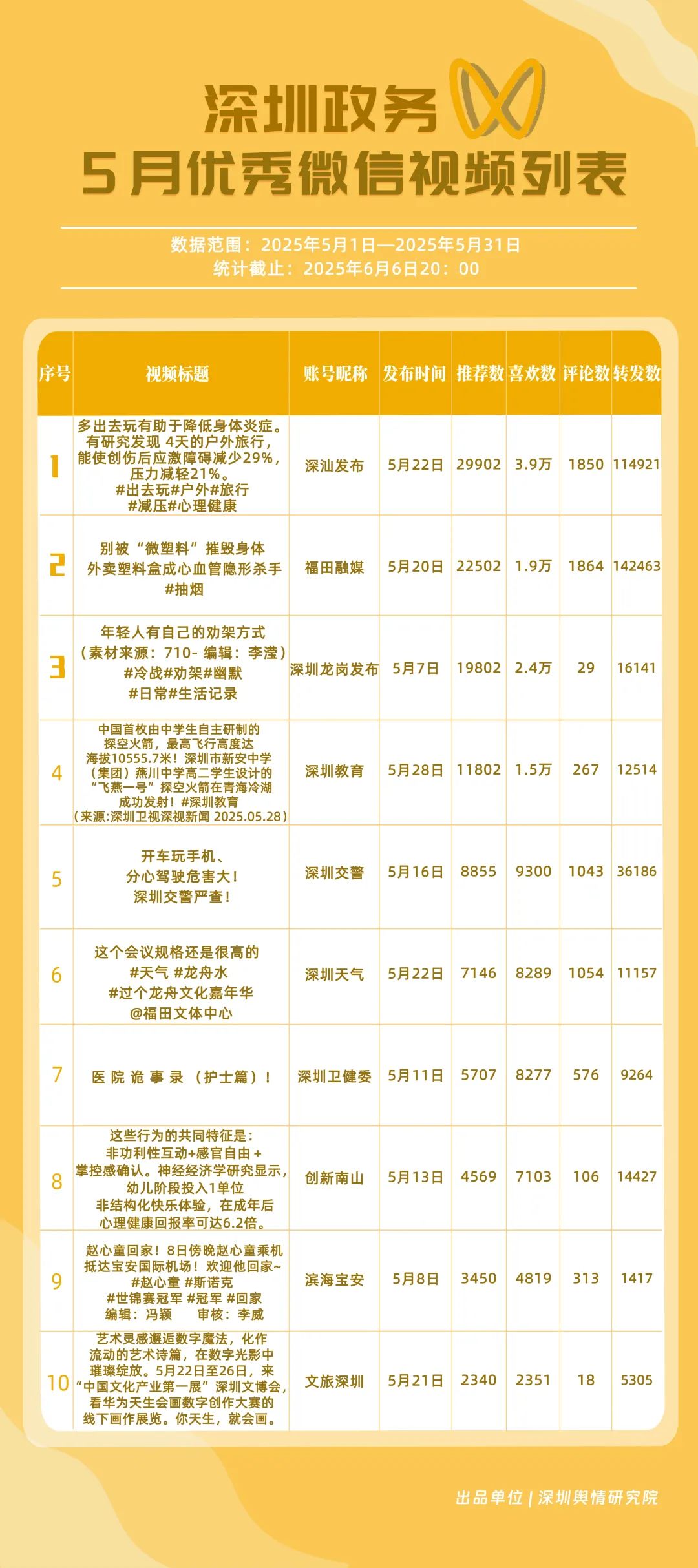 2025年5月期《深圳優(yōu)秀政務新媒體矩陣》發(fā)布,讓我們共同關注哪些矩陣以精準傳播、智慧服務與創(chuàng)新實踐,在政務新媒體領域打造出具有示范價值的標桿案例,以矩陣合力構建政務傳播新生態(tài),為深圳城市網絡形象塑造持續(xù)注入新動能。