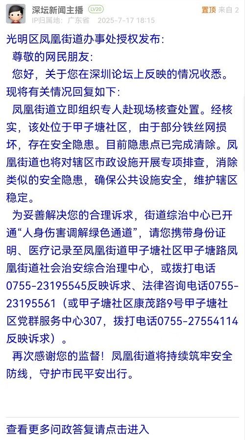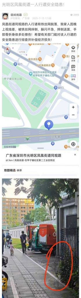 9. 帖文《光明區(qū)鳳凰街道一人行道安全隱患!》