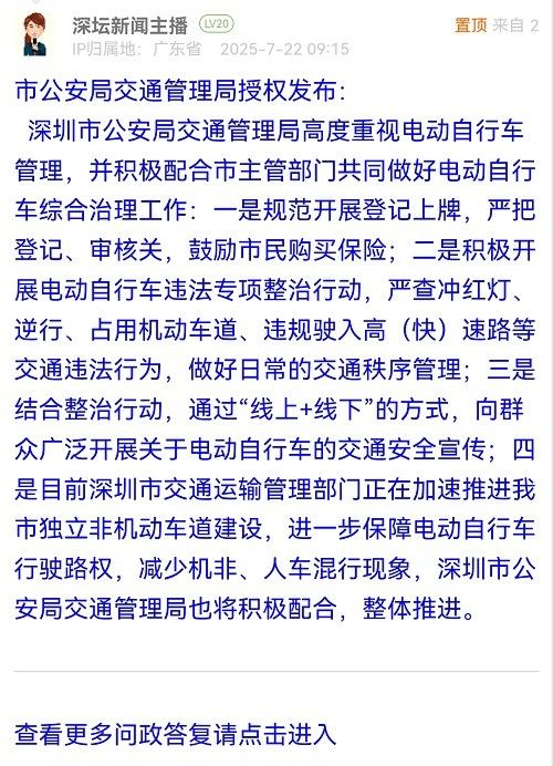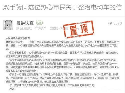 20. 帖文《雙手贊同這位熱心市民關(guān)于整治電動車的信》