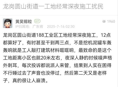 11. 帖文《龍崗圓山街道一工地經(jīng)常深夜施工擾民》