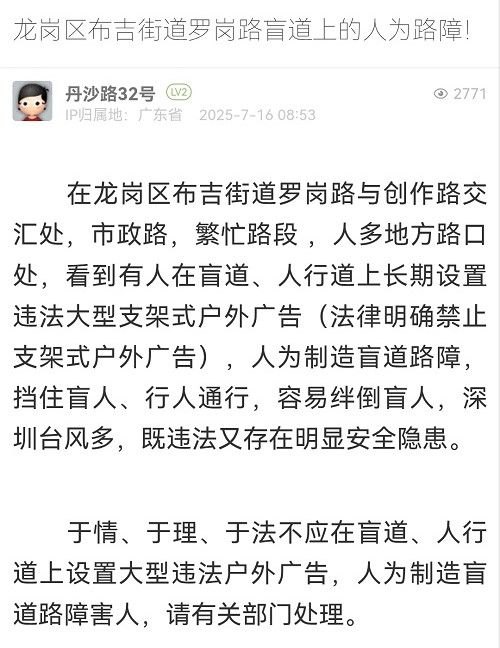 14. 帖文《龍崗區(qū)布吉街道南環(huán)路盲道上的人為路障!》