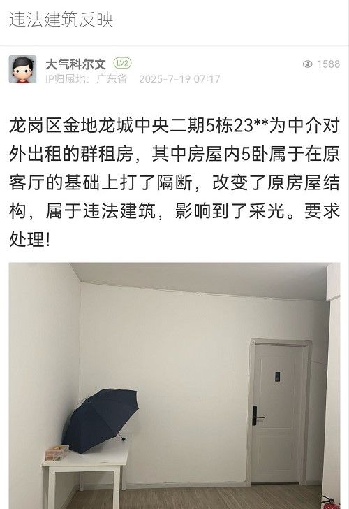 1. 帖文《投訴羅湖區(qū)蓮塘街道畔山路9號長期明顯違建!》