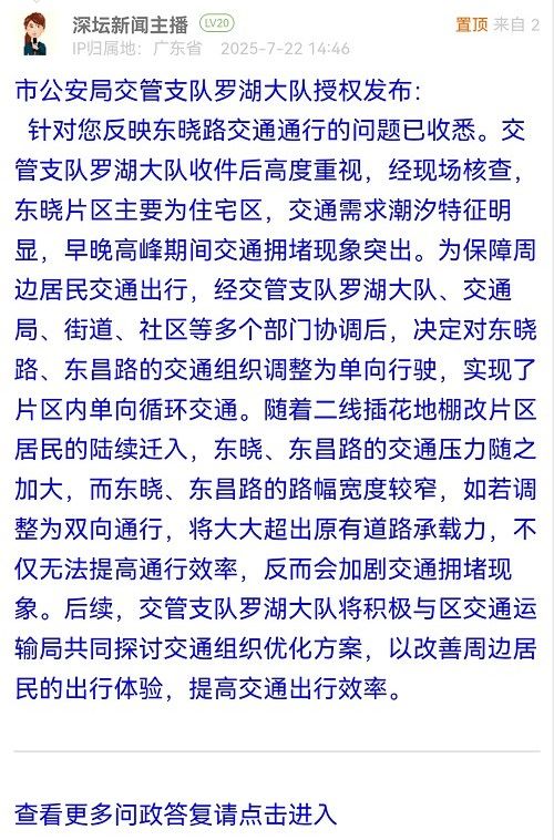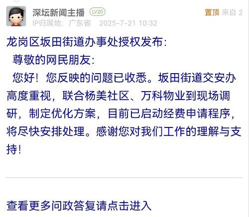 各職能單位如需對網(wǎng)友反映的問題進行回應,可在深圳論壇注冊官方賬號并通過認證,回帖進行回應。