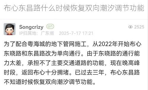 17. 帖文《布心東昌路什么時候恢復雙向潮汐調(diào)節(jié)功能》