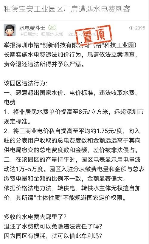 37. 帖文《租賃寶安工業(yè)園區(qū)廠房遭遇水電費刺客》