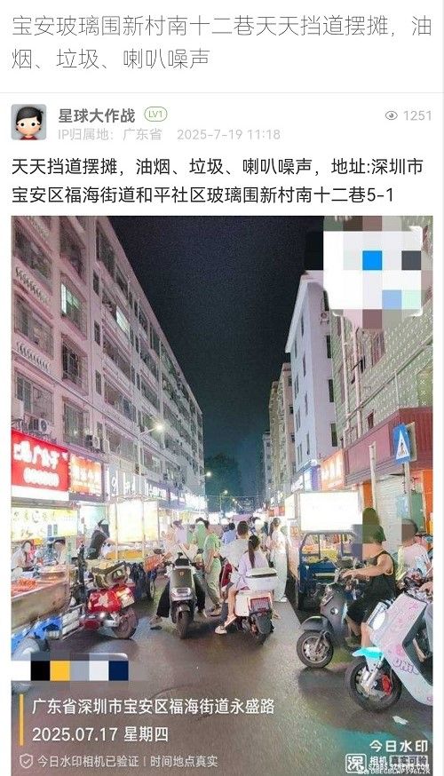 28. 帖文《寶安玻璃圍新村南十二巷天天擋道擺攤,油煙、垃圾、喇叭噪聲》