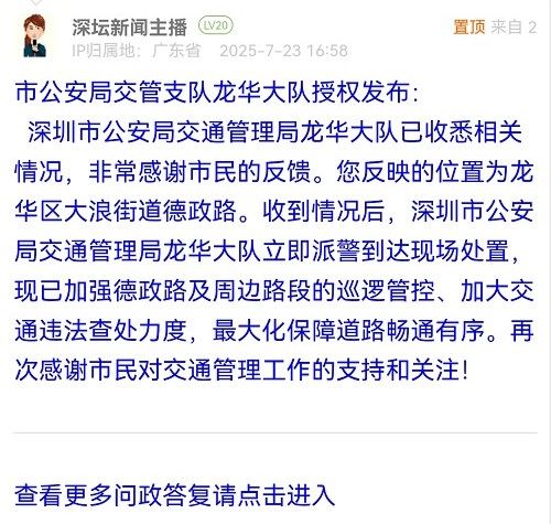 深圳市公安局交通管理局龍華大隊已收悉相關(guān)情況,非常感謝市民的反饋。您反映的位置為龍華區(qū)大浪街道德政路。收到情況后,深圳市公安局交通管理局龍華大隊立即派警到達現(xiàn)場處置,現(xiàn)已加強德政路及周邊路段的巡邏管控、加大交通違法查處力度,最大化保障道路暢通有序。再次感謝市民對交通管理工作的支持和關(guān)注!