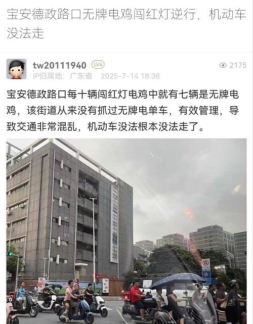 4. 帖文《寶安德政路口無牌電雞闖紅燈逆行,機動車沒法走》