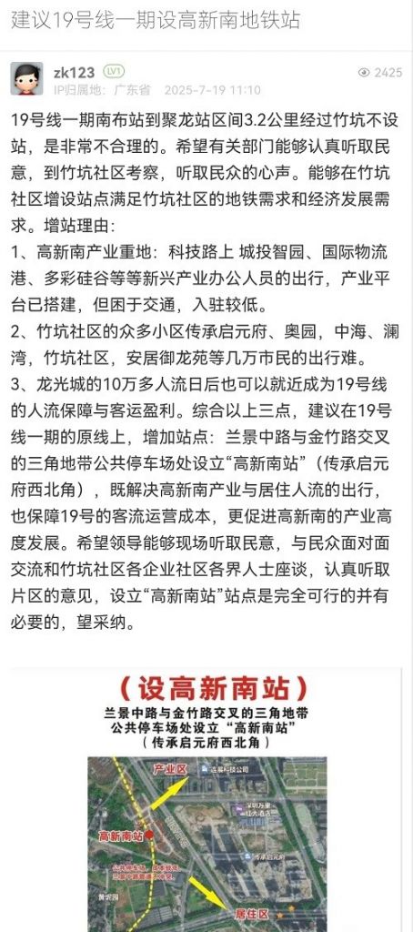 27. 帖文《建議19號線一期設高新南地鐵站》