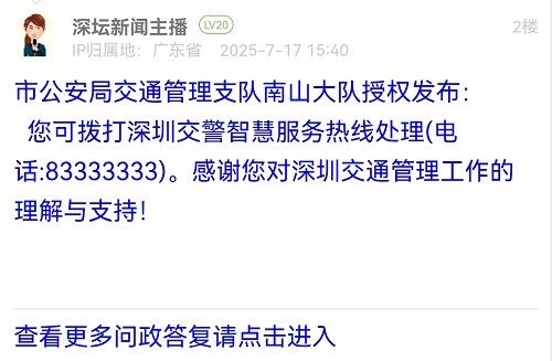 網(wǎng)友如有相關(guān)訴求、建言和意見的,可直接在深圳論壇“我說深圳事”欄目發(fā)帖進行報料、投訴,或者通過官方報料QQ以及問政熱線等渠道反映訴求。