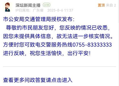 各職能單位如需對網(wǎng)友反映的問題進行回應(yīng),可在深圳論壇注冊官方賬號并通過認(rèn)證,回帖進行回應(yīng)。
