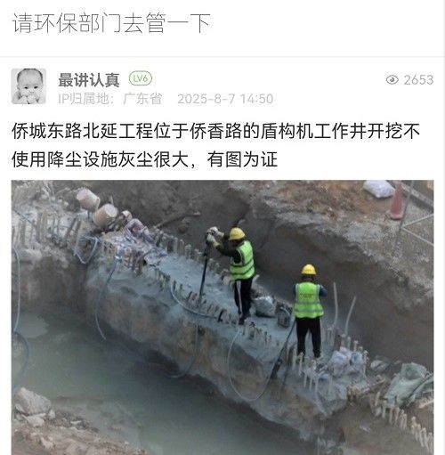 網(wǎng)友,您好!經(jīng)核實,該處為僑城東路北延通道工程盾構(gòu)工作井施工現(xiàn)場,現(xiàn)場圍擋已安裝自動噴淋系統(tǒng),并在主要施工區(qū)域設(shè)置霧炮機。目前現(xiàn)場正在開展鑿除地連墻混凝土施工,因作業(yè)點較分散,我們已安排施工單位增加霧炮機,確保易揚塵面濕法連續(xù)作業(yè)。后續(xù)將安排專人專責(zé),加強工地現(xiàn)場常態(tài)化巡視巡檢,做好防塵防護措施。感謝您的關(guān)注和理解!