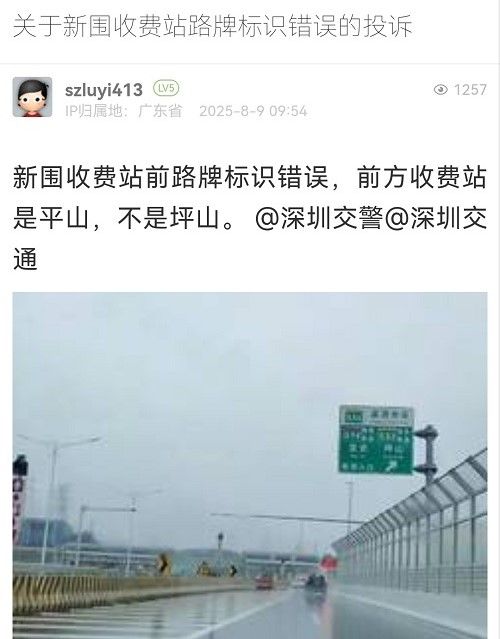 26. 帖文《關(guān)于新圍收費站路牌標(biāo)識錯誤的投訴》