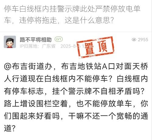 針對市民提及“白線框內(nèi)有停車標(biāo)志,掛個警示牌不自相矛盾嗎?”的問題。經(jīng)核實,市民提及的問題處已被規(guī)劃為不可停放區(qū)域,禁停標(biāo)識及鐵馬圍擋是為清除白線框施工而設(shè)置的臨時空間預(yù)留措施,對此給市民帶來的誤解以及不便,我們深表歉意。目前該處白線停車框及禁停標(biāo)識已一并清除。