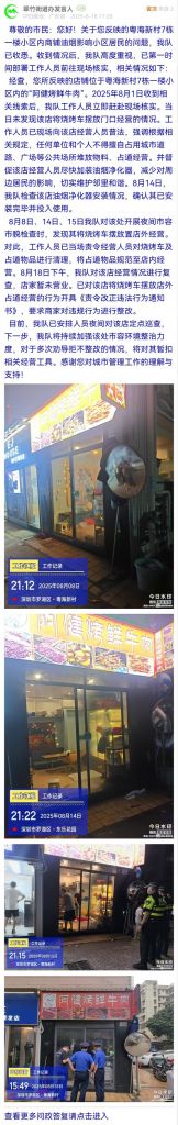 目前,我隊已安排人員夜間對該店定點(diǎn)巡查,下一步,我隊將持續(xù)加強(qiáng)該處市容環(huán)境整治力度,對于多次勸導(dǎo)拒不整改的情況,將對其暫扣相關(guān)經(jīng)營工具。感謝您對城市管理工作的理解與支持!