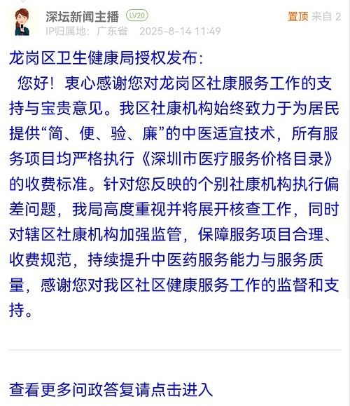 您好!衷心感謝您對龍崗區(qū)社康服務(wù)工作的支持與寶貴意見。我區(qū)社康機(jī)構(gòu)始終致力于為居民提供“簡、便、驗、廉”的中醫(yī)適宜技術(shù),所有服務(wù)項目均嚴(yán)格執(zhí)行《深圳市醫(yī)療服務(wù)價格目錄》的收費(fèi)標(biāo)準(zhǔn)。針對您反映的個別社康機(jī)構(gòu)執(zhí)行偏差問題,我局高度重視并將展開核查工作,同時對轄區(qū)社康機(jī)構(gòu)加強(qiáng)監(jiān)管,保障服務(wù)項目合理、收費(fèi)規(guī)范,持續(xù)提升中醫(yī)藥服務(wù)能力與服務(wù)質(zhì)量,感謝您對我區(qū)社區(qū)健康服務(wù)工作的監(jiān)督和支持。